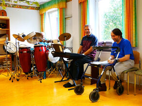 Die Residenz „Leben am Wald“ ist stolz auf ihre Hausband, in welcher sich jeder Bewohner als Musiker nach Herzenslust verwirklichen kann. Der Musiktherapeut leitet die Gruppe und gibt Ratschläge und hilft bei der Umsetzung der Liederauswahl.