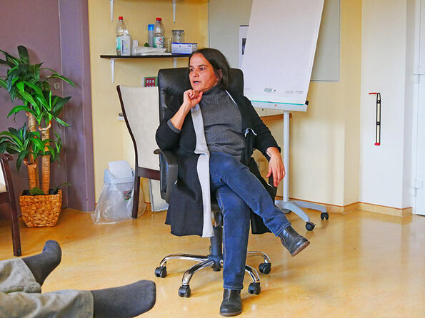 Der mit wallenden, hellen Stoffen komplett verkleidete Raum sorgt für ein absolut ruhiges, warmes Therapie-Umfeld. Lichteffekte und verschiedene Düfte und Geräusche erzeugen eine einzigartige Wohlfühl-Atmosphäre in den Gruppensitzungen.