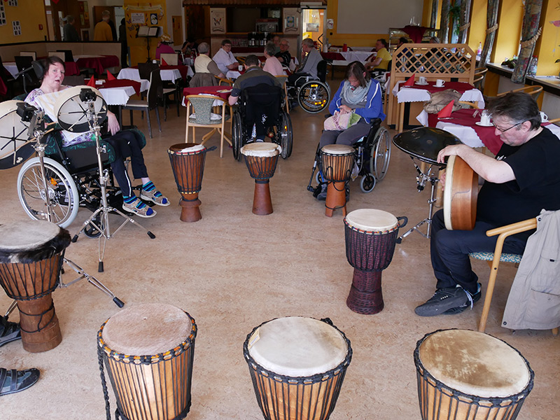 Über Volksmusik bis hin zu Popschlagern: Alles ist erlaubt, Hauptsache es macht den Bewohnern Spaß. Hier können sich musisch begabte Menschen an ihrem Instrument einbringen und auch in schwierigen Lagen zeigen und auch selbst erleben, was sie noch leisten können.