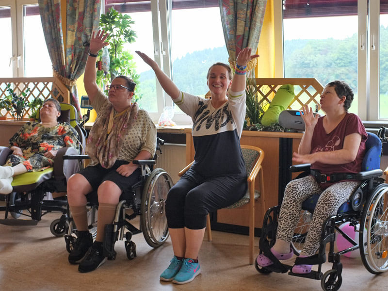 Im Sportraum haben unsere Bewohner die Möglichkeit, den Muskelaufbau zu trainieren, ihr Gleichgewicht zu verbessern, die Koordination zu trainieren, sowie Lauf-und Gehübungen am Barren vorzunehmen. Auch fördert der Sportbereich mehr Akzeptanz unter den verschiedenen Krankheitsbildern der Bewohner. Viele Bewohner kommen nicht nur wegen dem Sportangebot, sondern auch um in Gemeinschaft sich austauschen zu können.